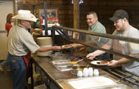 Tom Perini believes all a good steak needs is a little traditional Texas dry rub seasoning and a very hot fire of mesquite coals. While beef takes center stage in his “cowboy cuisine,” catfish, ribs and hamburgers also share the grill. Add his signature Green Chile Hominy (made with bacon, cheddar cheese and green chiles) – and you have one of the best meals to be had in the The Lonestar State. You will dine outside under the stars and enjoy ranch living and Texas hospitality at it’s finest. They also have the best brunch featuring chicken fried steak, homemade buttermilk biscuits and black eyed peas.